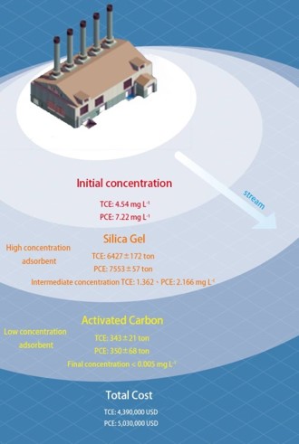 迄今已經發展出許多的處理技術,在這些技術中,吸附 (Adsorption) 被認為是一種有效且運行成本低的方法,但是尋找合適又符合經濟效益的吸附劑種類和使用量是相當重要的。本研究探討兩種不同的吸附劑(矽膠及活性碳)對三氯乙烯 (Trichloroethylene, TCE) 以及四氯乙烯 (Perchloroethylene, PCE)的實驗性吸附研究,